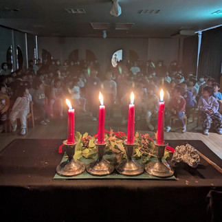 本日、子どもクリスマス会がありました。これまで一生懸命練習してきた劇や合奏を、他の学年のお友だちに見てもらいました。ワクワクしながら舞台にたつ子、ちょっぴり緊張して固まってしまう子など、子どもたちの姿はさまざまでしたが、見てもらい拍手をもらえた喜びはみんなの心にしっかり届いたようです!