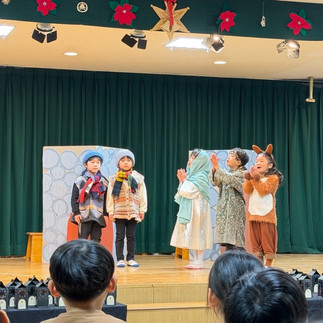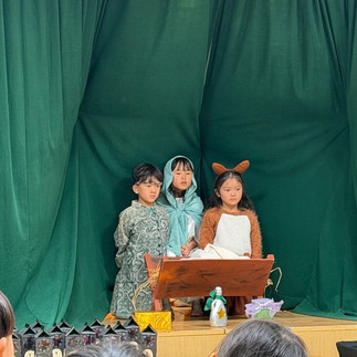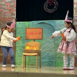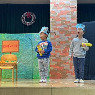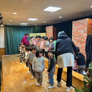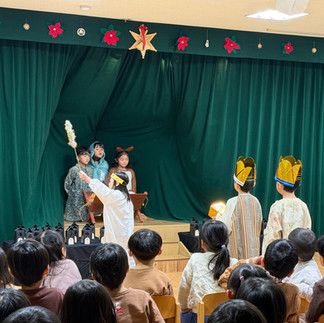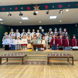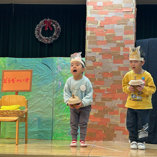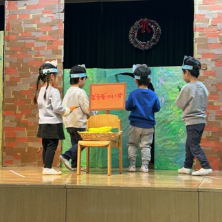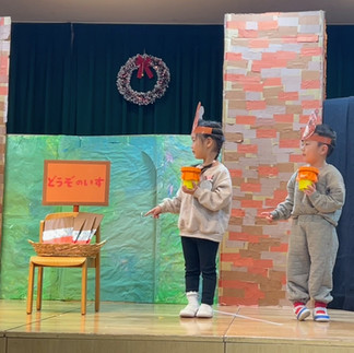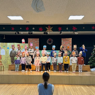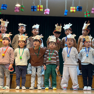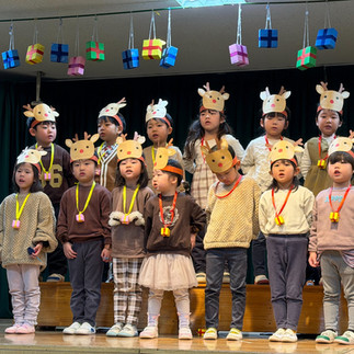 18日(木)にクリスマス会を無事開催することができました!各学年11月から練習を重ねてきた劇や合奏をお家の方々に披露しました。繰り返しの練習の中で声が大きくなり、自信がついていきましたが、当日、たくさんの観客に見られている緊張感のある環境にドキドキして動きや表情が硬くなってしまう子がいたり、見てもらえることが嬉しくて保護者に手を振る子も。個々それぞれの様子でしたが、自分の力を出し切ったみんな、とっても頑張りました!!